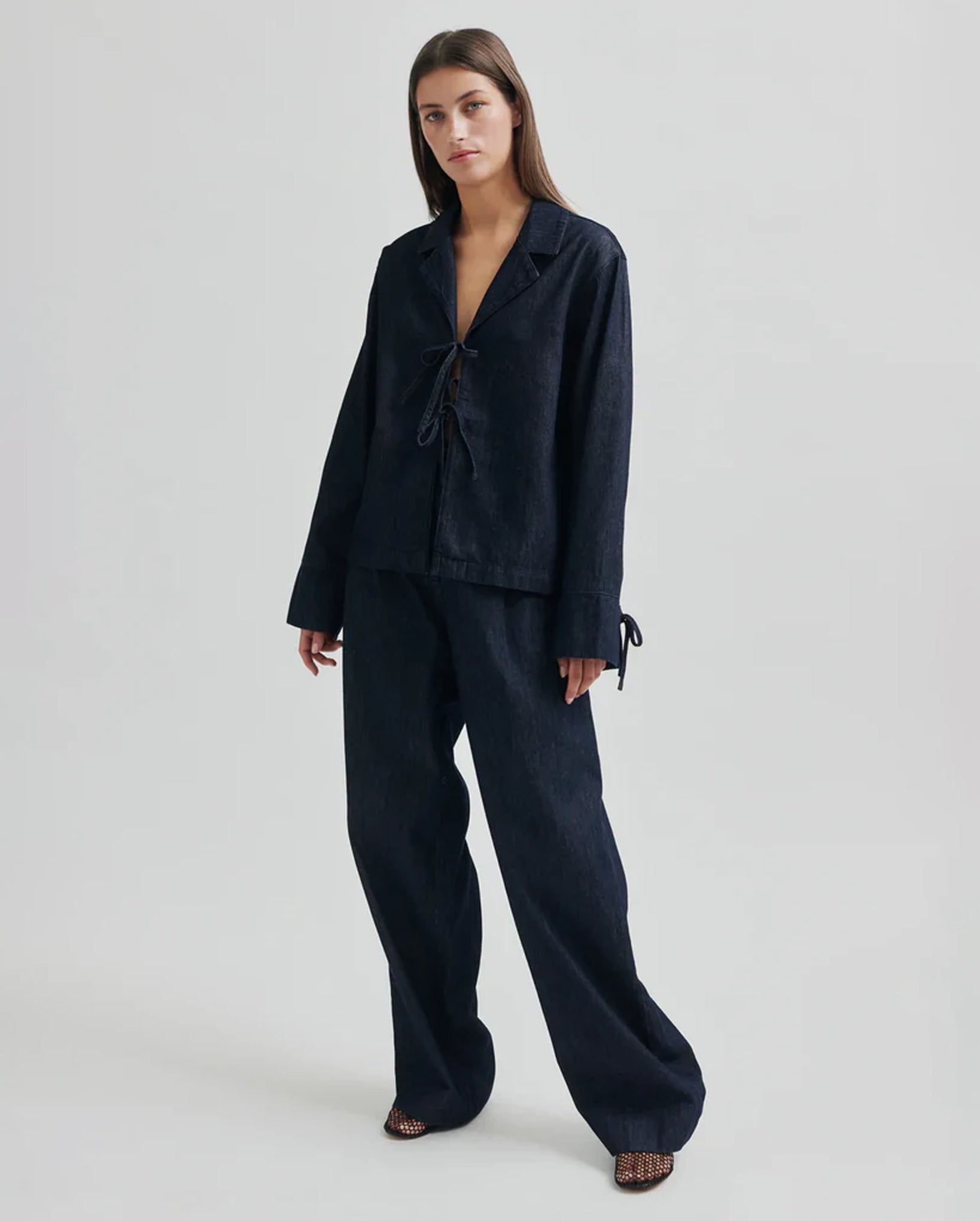Alluet Tie Front Shirt (Dark Blue Denim)