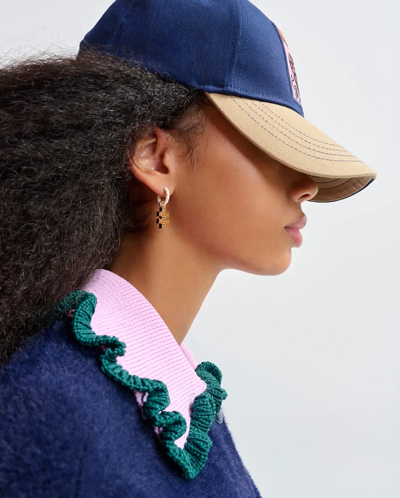 Hoop Earrings with Bat and Puzzle Pendants (Gold/Off-White)