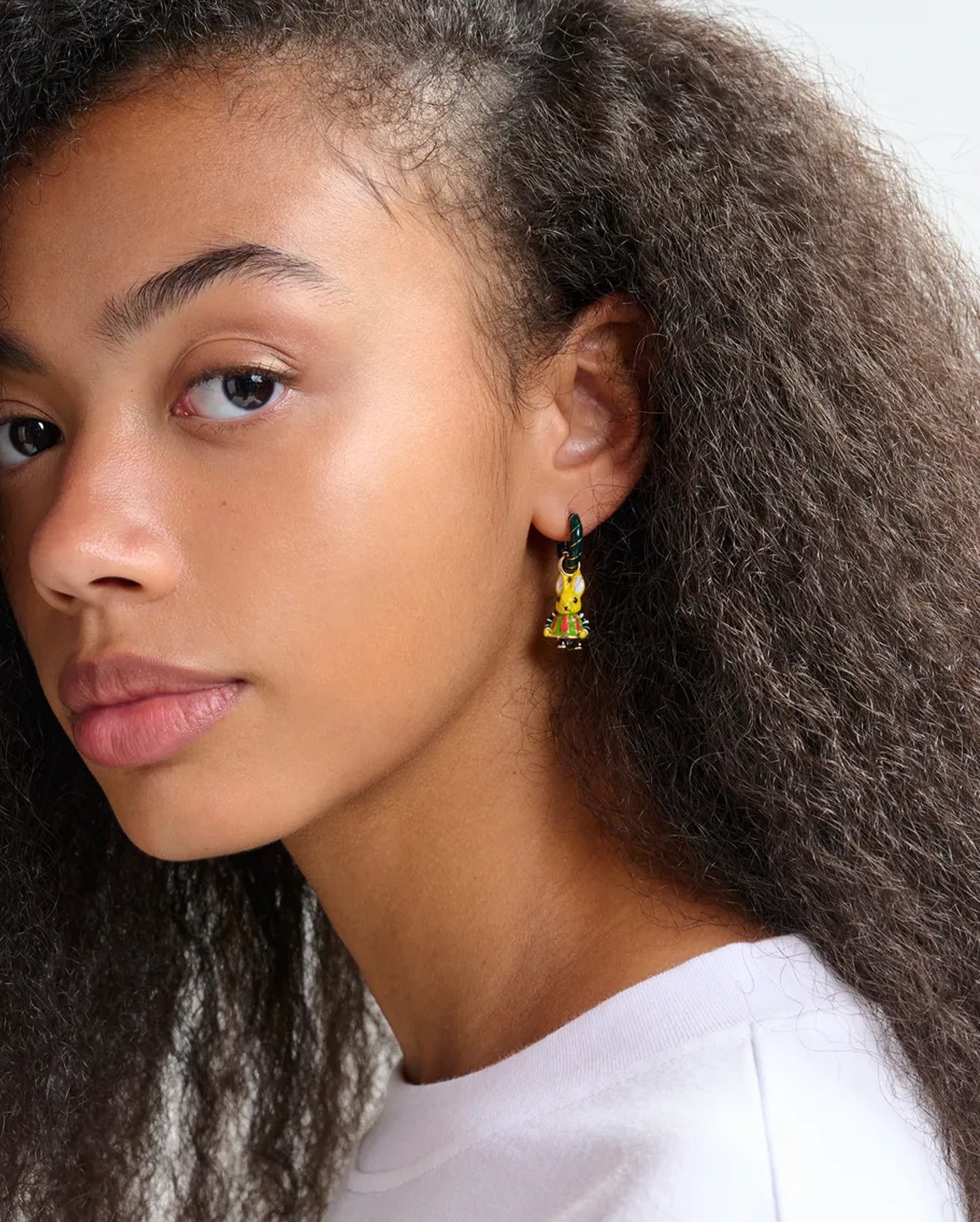 Hoop Earrings with Horse and Boy Pendants (Green/Gold)