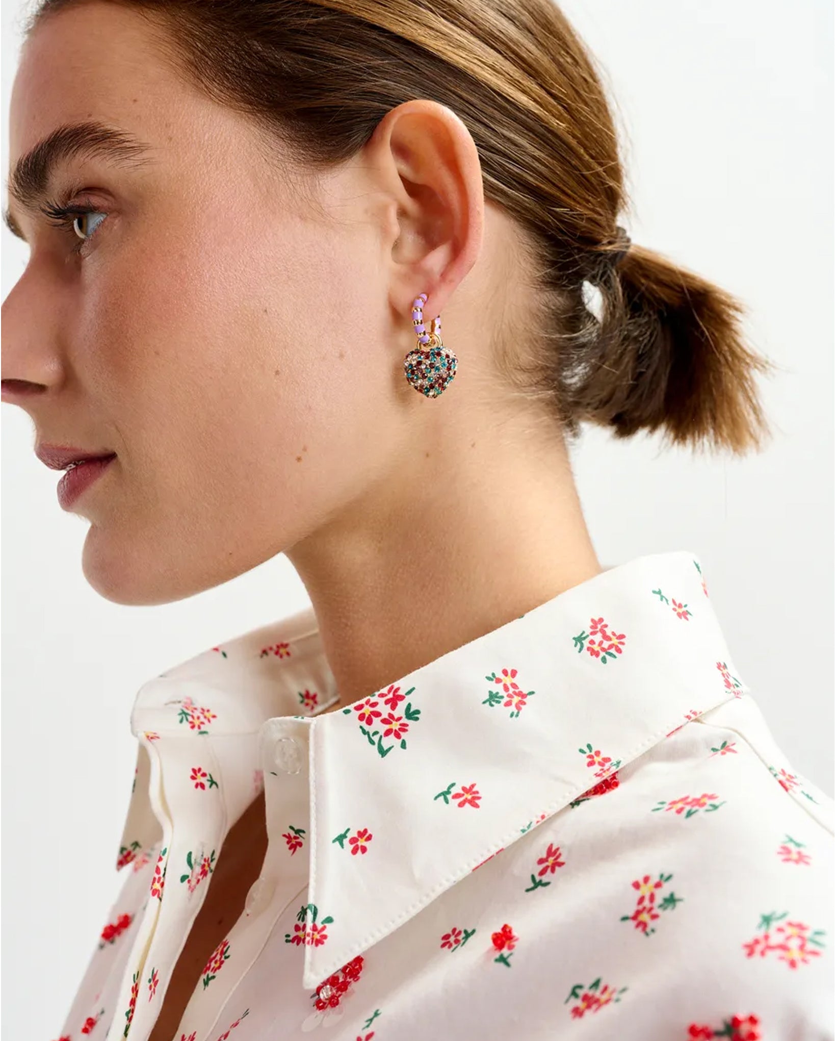 Hoop Earrings with Plane and Heart Pendants (Gold/Purple)