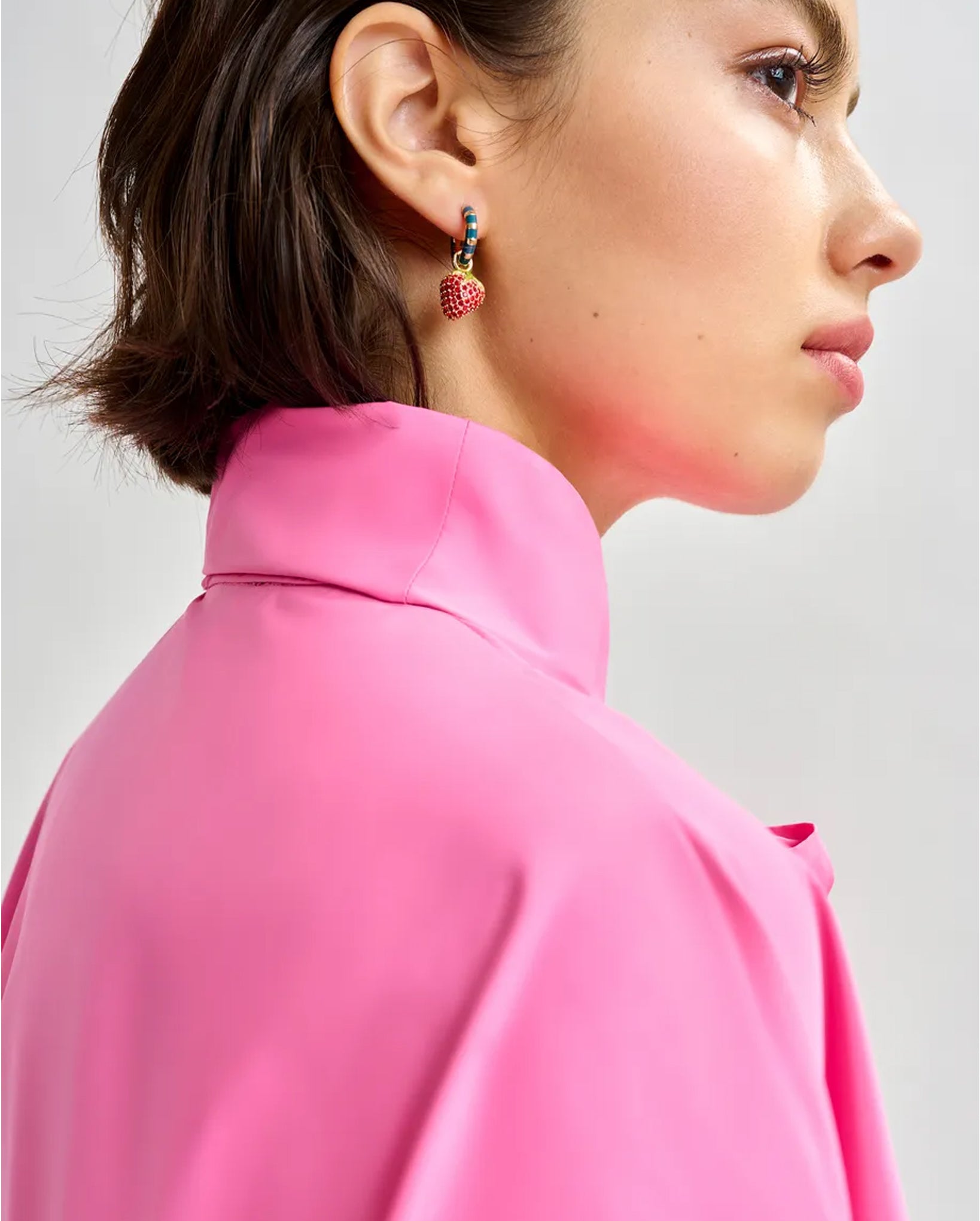 Hoop Earrings with Dinosaur and Strawberry Pendants (Blue/Gold)