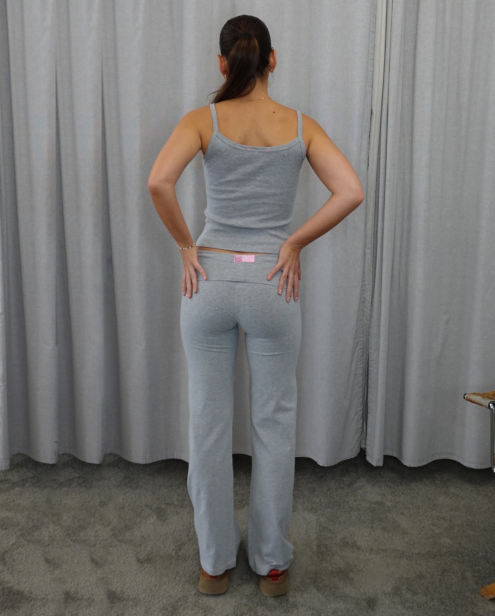 These Garment Dye Cotton Spandex Yoga Leggings are a universally flattering everyday staple and are made of a heavyweight cotton spandex with extra compression so you feel supported. Pair these versatile, flared leggings with any of our matching crop tops and dress them up or down. The folder waistband on this style allows them to be worn super high, mid-rise or low rise. This style has been garment dyed for a rich, one-of-a-kind wash with a unique texture and colour. Runs true to size.